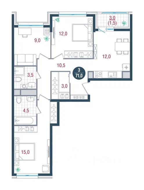 Двухкомнатная квартира ЖК «Собрание клубных домов West Garden (Вест Гарден)», 66.9 м², №3287
