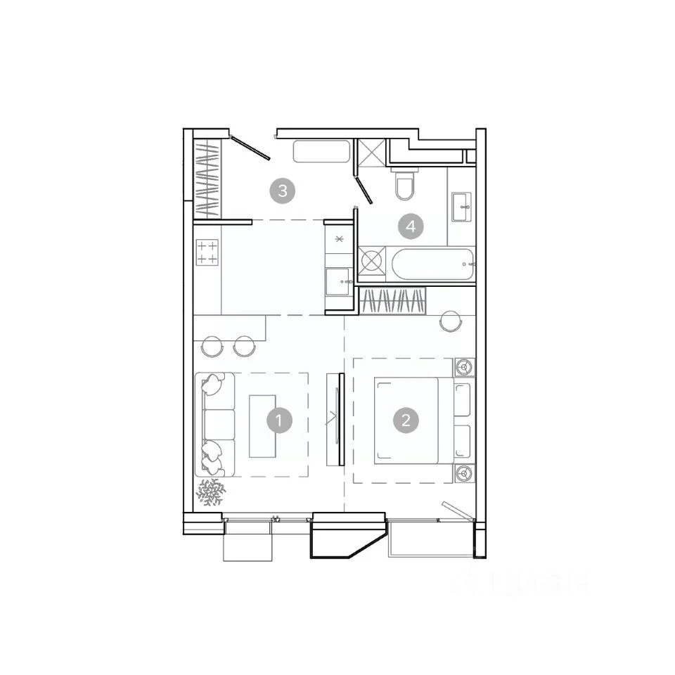 2-комнатная, 43.5 м², №112662