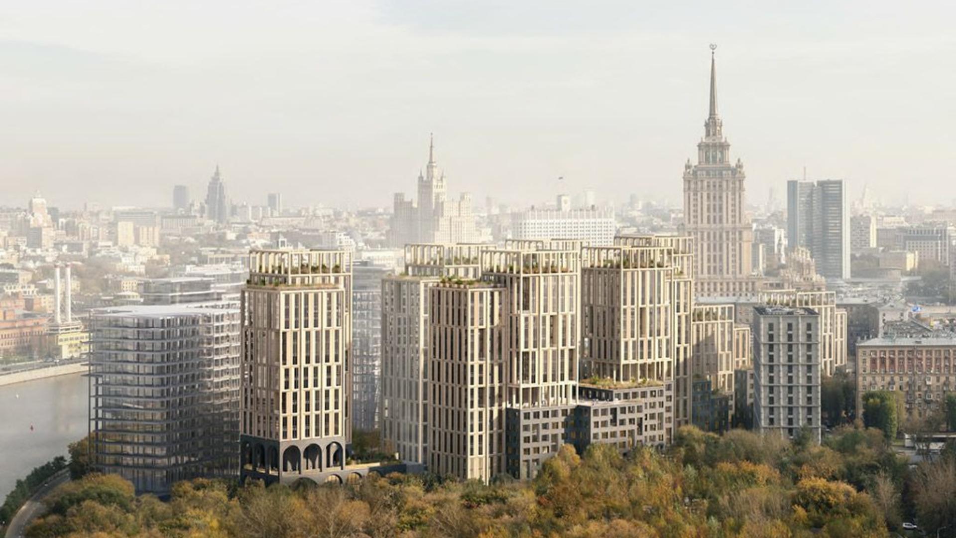 Фасады выполнены из натуральных материалов — камня, стекла и металла в благородных тёплых оттенках, что подчёркивает сдержанную роскошь и характер проспекта. Внутренний двор превращён в частный ландшафтный сад с дорожками, зонами отдыха и искусным озеленением. Здесь чувствуется тишина, отрезанная от городского ритма, хотя за пределами квартала — деловой и культурный центр Москвы.