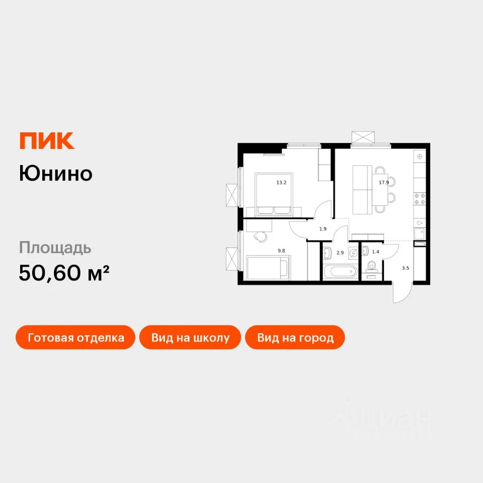 Продается 2-комнатная квартира в ЖК Юнино - по цене 18 863 680 ₽ от застройщика ПИК. Находится по адресу: Москва, Щербинка, жилой комплекс Юнино, 1.1 возле метро Щербинка в районе Щербинка. Общая площадь квартиры - 50.6 м². Этаж 7 из 17.