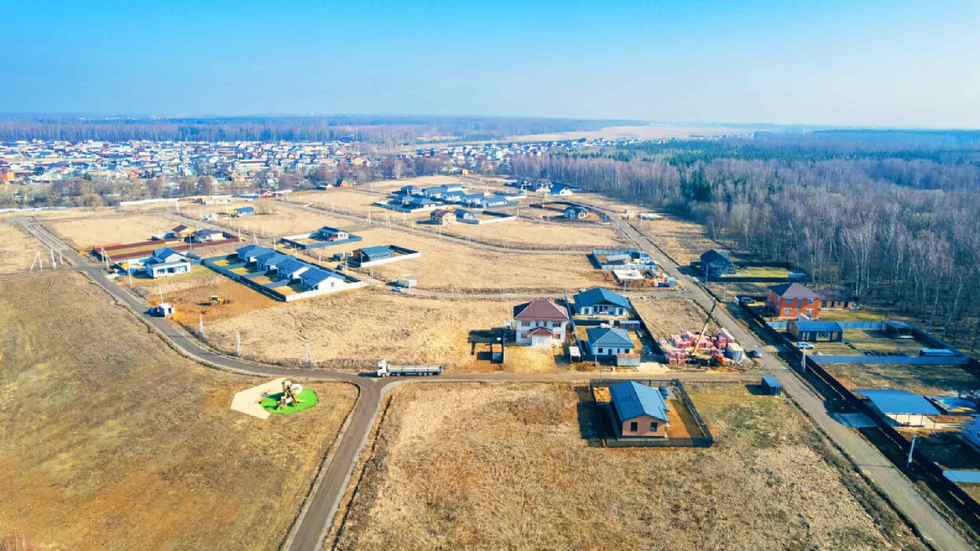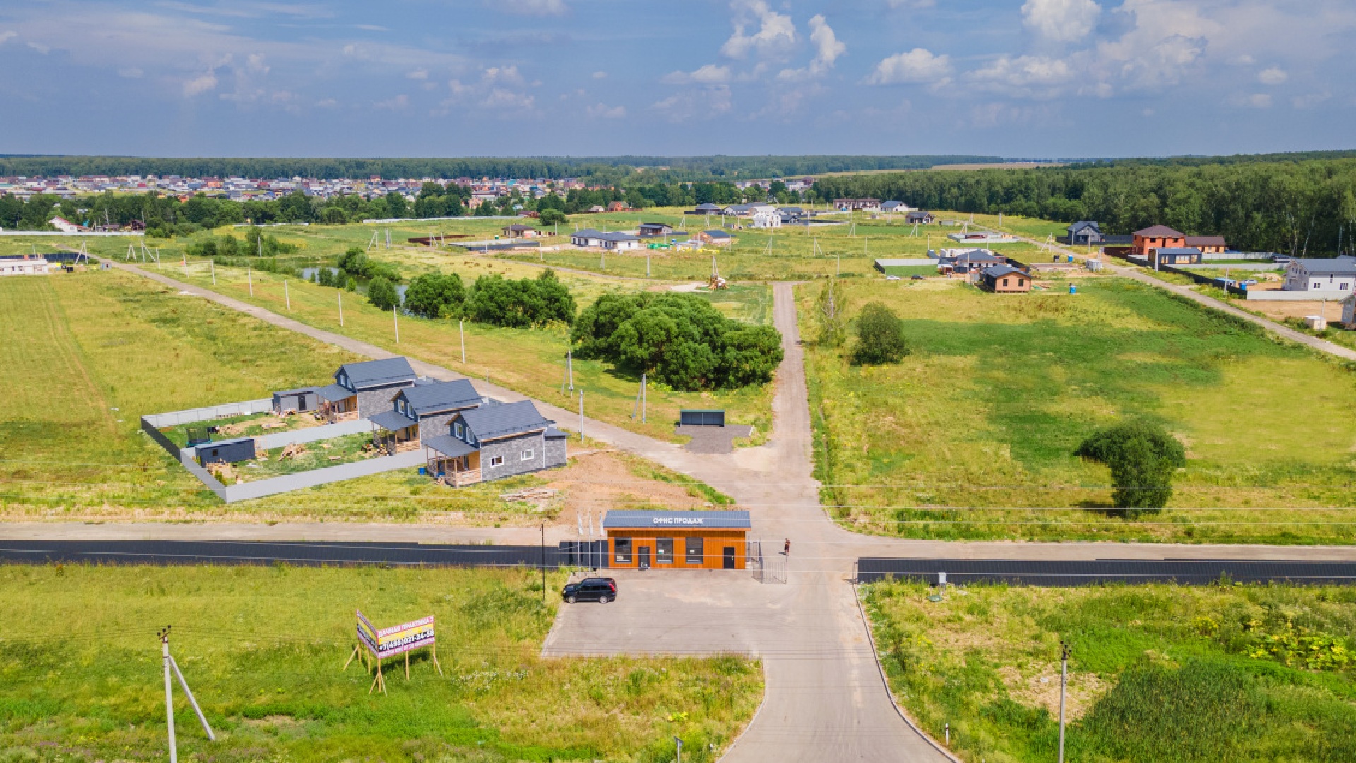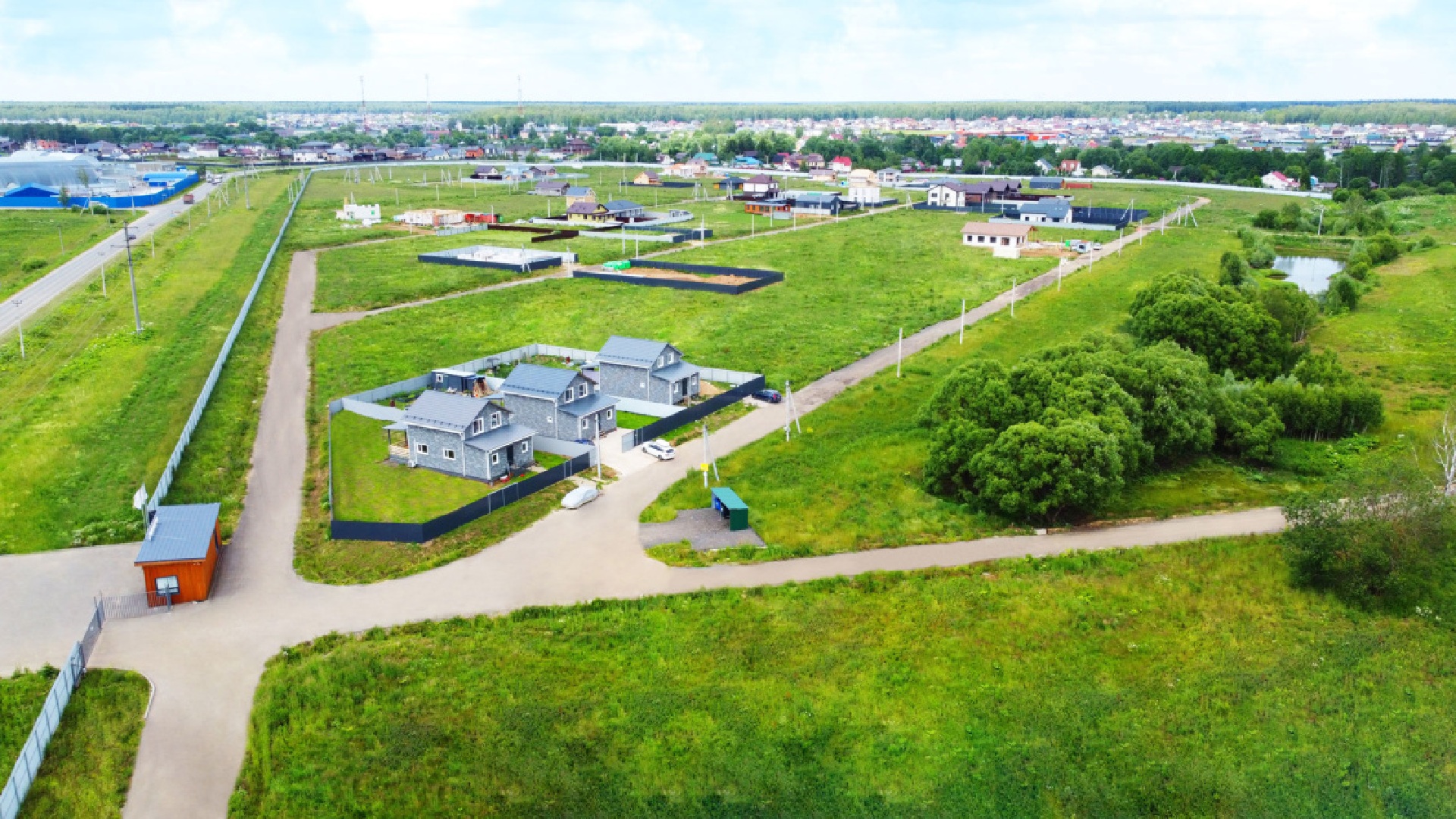 Безопасность обеспечивается закрытым периметром, на въезде установлен КПП с охраной и системой видеонаблюдения. Внутреннее благоустройство включает детские и спортивные площадки, зоны отдыха и гостевой паркинг. Время в пути от МКАД составляет в среднем 35–45 минут. Поселок является завершенным проектом с действующей управляющей компанией, обеспечивающей вывоз мусора и чистку дорог.