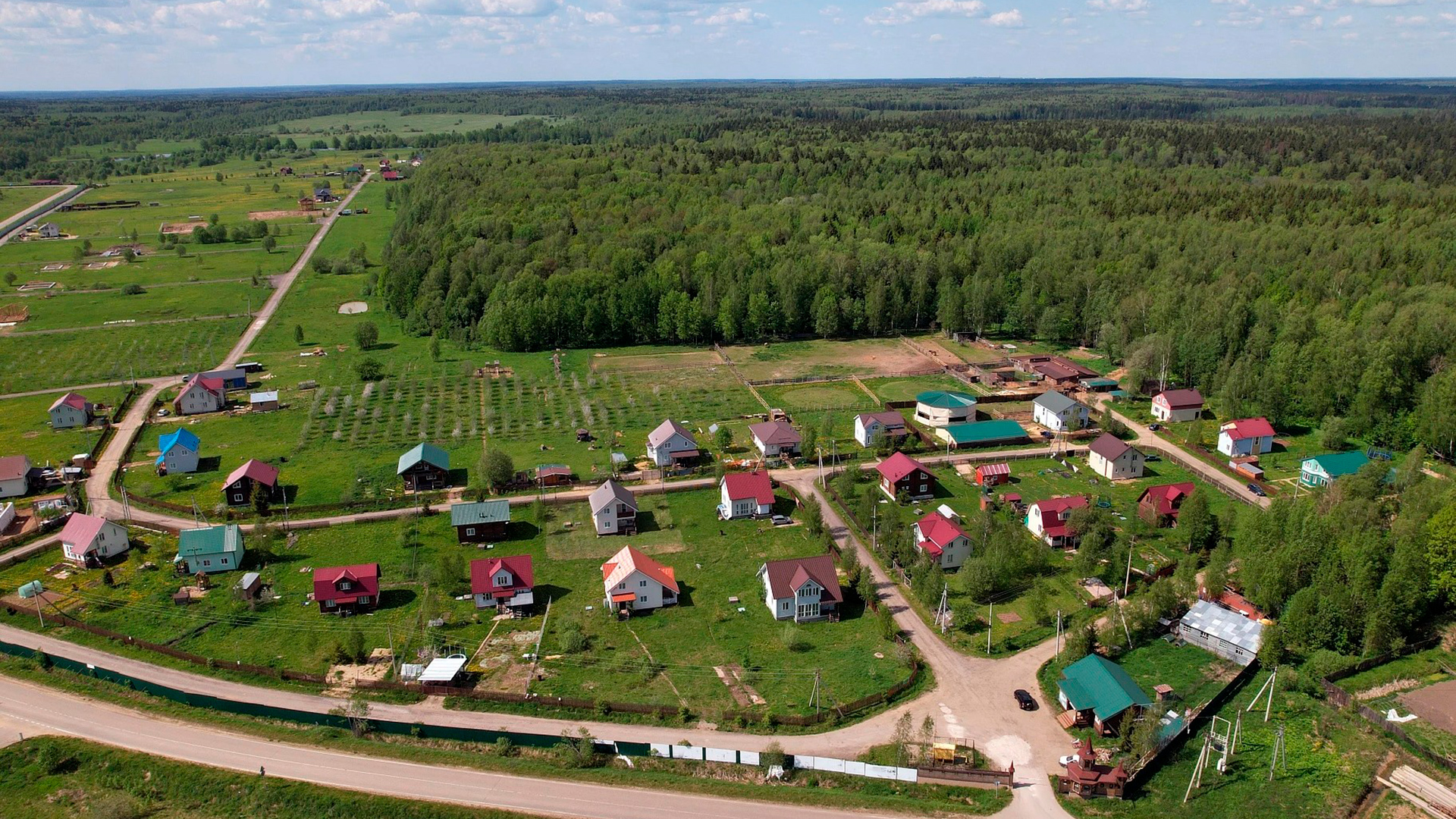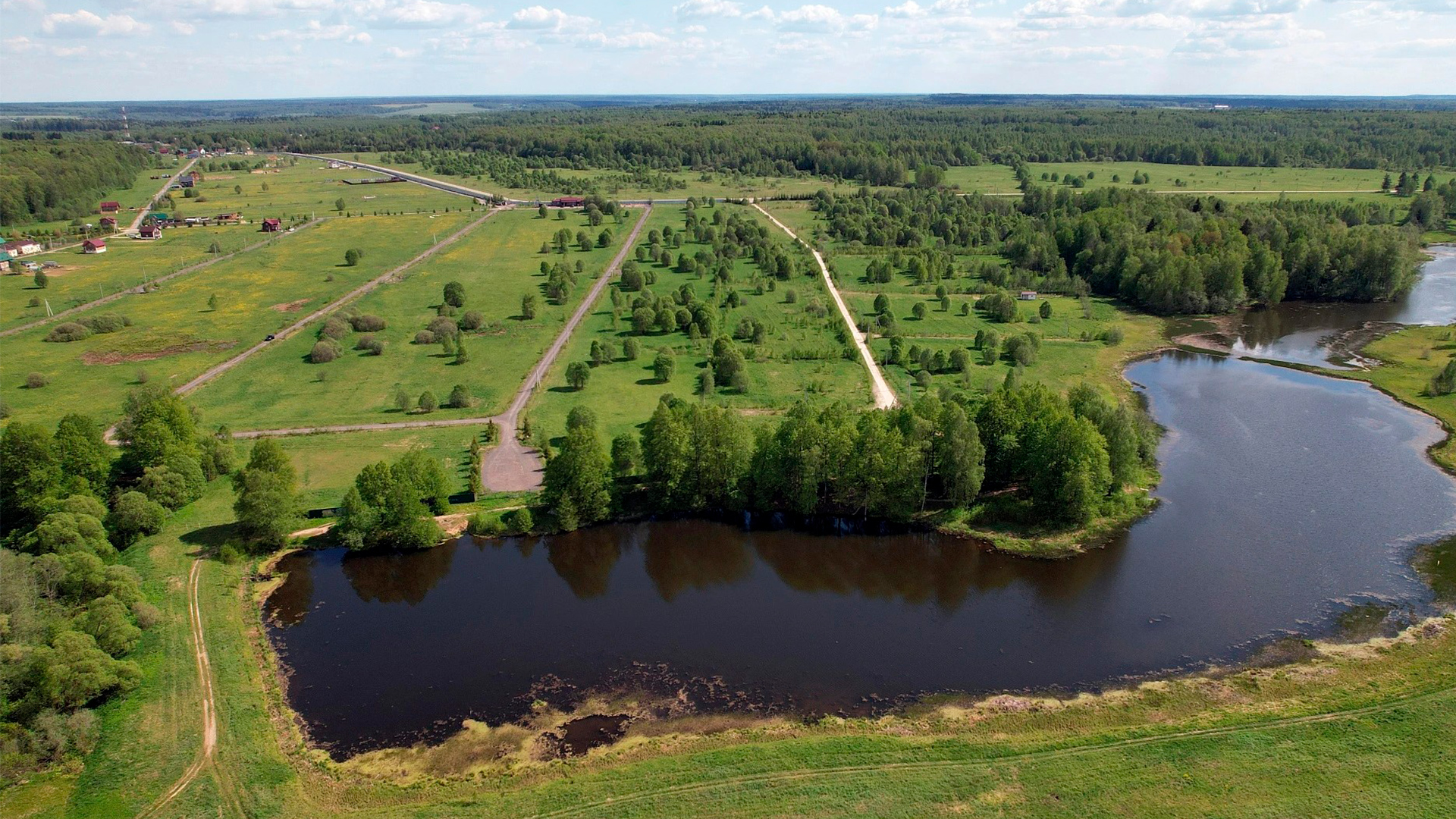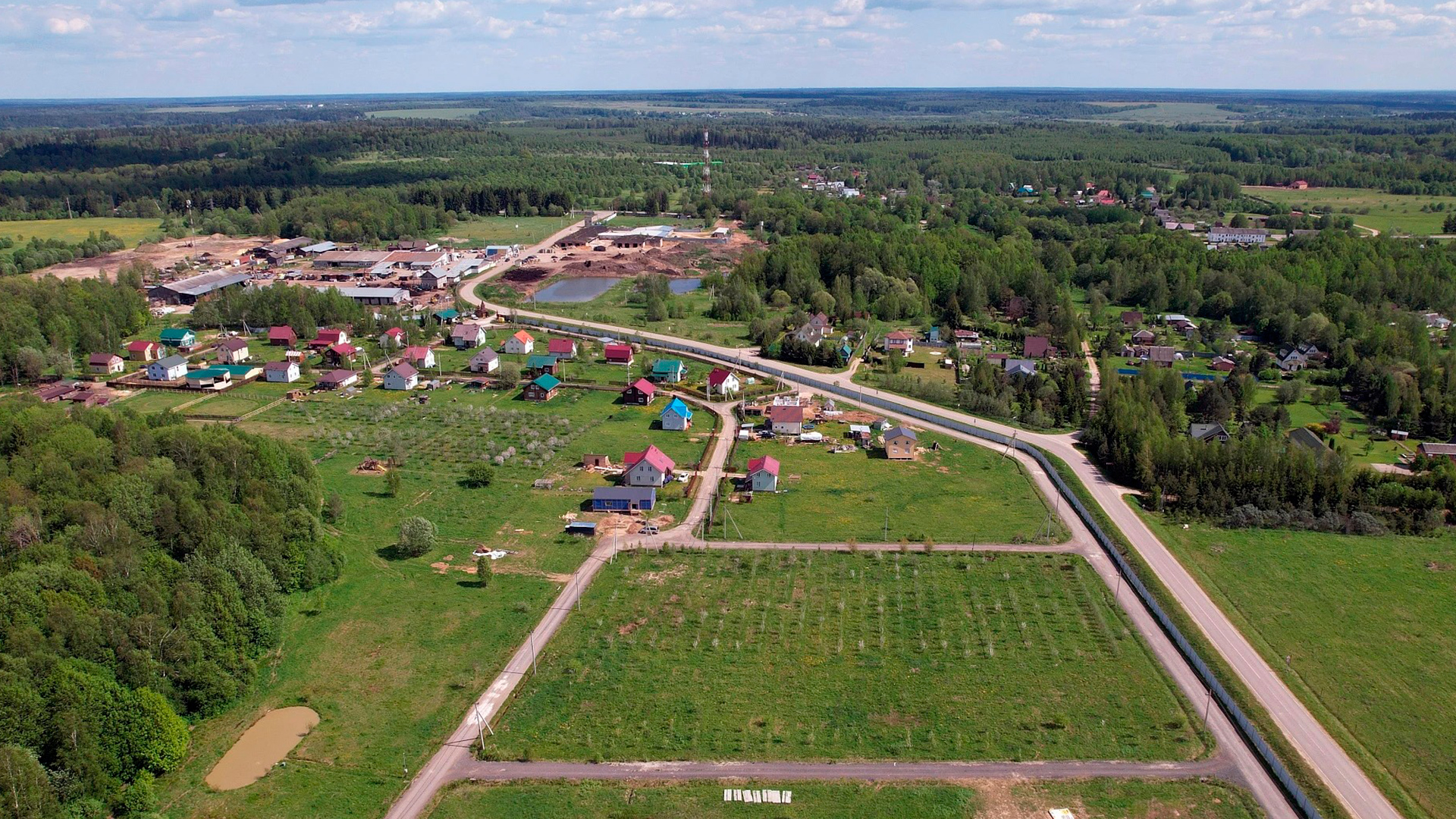 Безопасность территории обеспечивается закрытым периметром и КПП с автоматическим шлагбаумом, управление которым осуществляется дистанционно. Внутреннее устройство ориентировано на тихий загородный отдых: обустроены зоны для прогулок у воды, места для рыбалки на прудах, современные детские игровые площадки и гостевой паркинг. Время в пути от МКАД по бессветофорному Минскому шоссе составляет около 1 часа 20 минут — 1 часа 40 минут. Поселок идеально подходит для строительства дачи или дома для постоянного проживания вдали от промышленного шума.