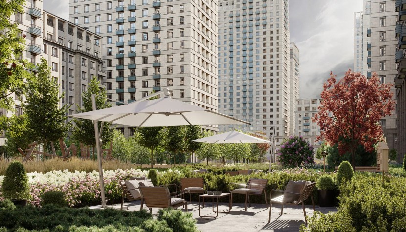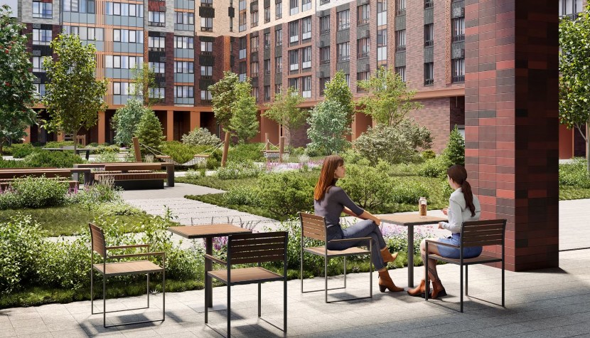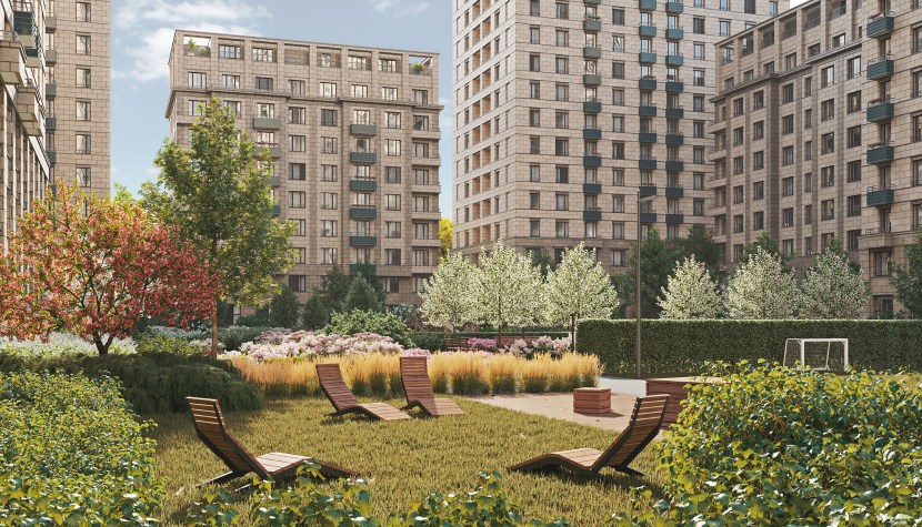 Зелеными насаждениями покрыто более 70% придомовой территории: на ней располагаются зоны для пикников, занятий спортом, детских активностей и тихого отдыха. Большая площадь двора-парка позволит каждому найти свое место и не отвлекать окружающих.
